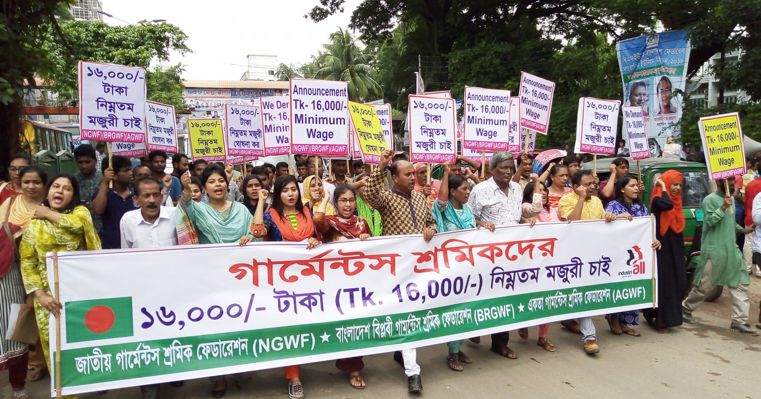 Les travailleurs demandent l’élévation du salaire minimum, actuellement à un niveau de pauvreté, à 16 000 takas – soit environs 162 euros, un cadre statutaire réglementant les négociations salariales, ainsi que des mesures de protection sociale. Le Conseil pour le Bangladesh (ICB) de la fédération syndicale internationale IndustriAll a formellement soumis ces demandes, soutenues par une large coalition de syndicats, d’ONG et d’organisations de défense des droits humains au travail, au président du Comité bangladais sur le salaire minimum.