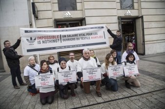 Samedi 28 janvier dernier, à l’occasion du mondial de Handball dont Adidas est sponsor officiel, nous avons rappelé à l’équipementier sportif leader en Europe que son slogan "Impossible is nothing" n’a aucun sens lorsque les ouvriers de ses chaînes d’approvisionnement ne gagnent pas de quoi vivre décemment, lors d’un happening devant sa boutique des Champs-Elysées.