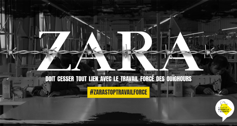 Du 30 novembre au 4 décembre 2020, nous lançons une semaine d’action internationale pour exiger que Zara mette un terme à sa complicité dans le travail forcé des Ouïghours. Demandons à Zara de prendre ses responsabilités en donnant la preuve qu’elle cesse tout lien avec le travail forcé des Ouïghours et en signant l’Appel à action qui l’engage à se retirer de la région ouïghoure.